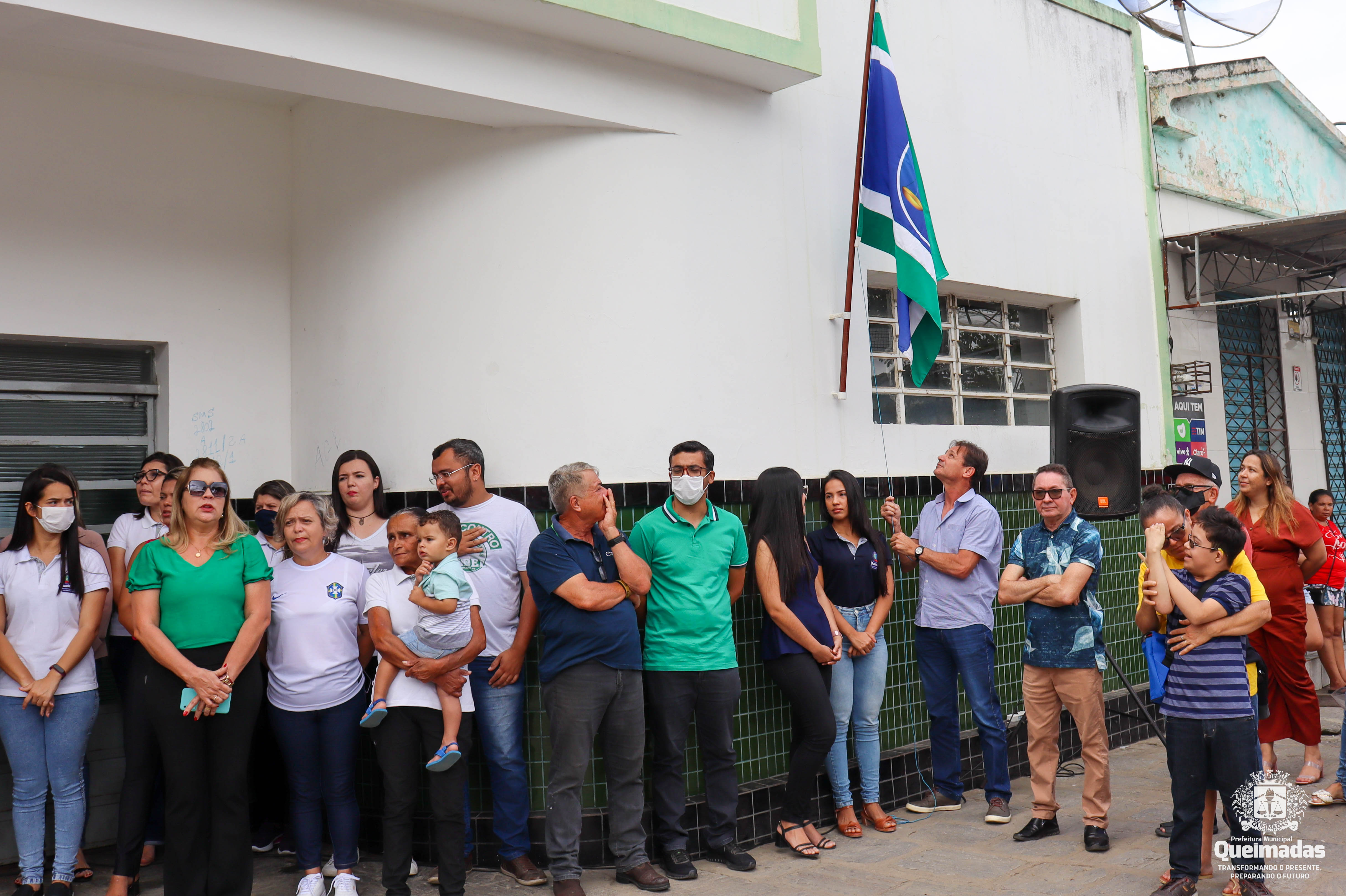 Brasil, da Paraíba e de Queimadas, ao som dos hinos Nacional e Municipal. A