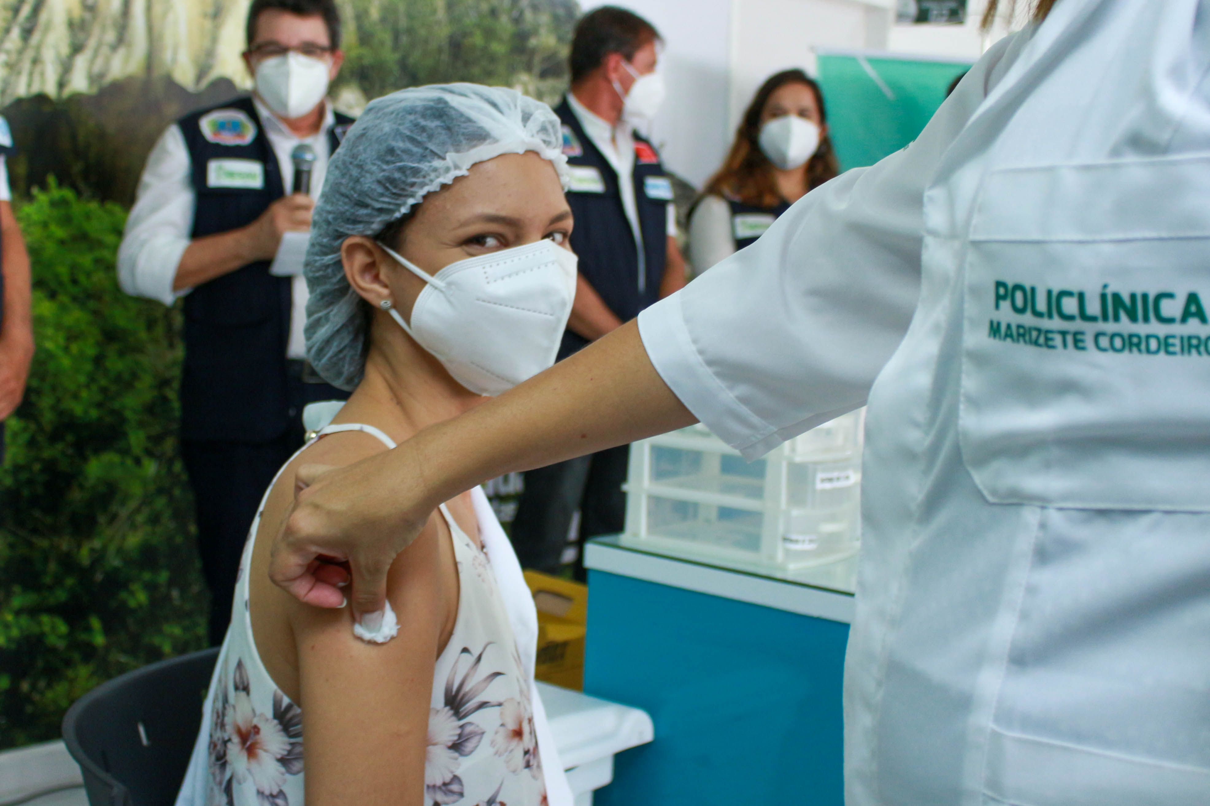 Após o condutor socorrista José de Arimateia, a enfermeira Thamara de Jesus, do Centro de Covid-19, e o condutor de ambulâncias Severino Jorge, da Policlínica Municipal, foram contemplados com a segunda e terceira doses da vacina. A partir deste momento simbólico, a Secretaria Municipal de Saúde continuará a vacinação dos demais profissionais.