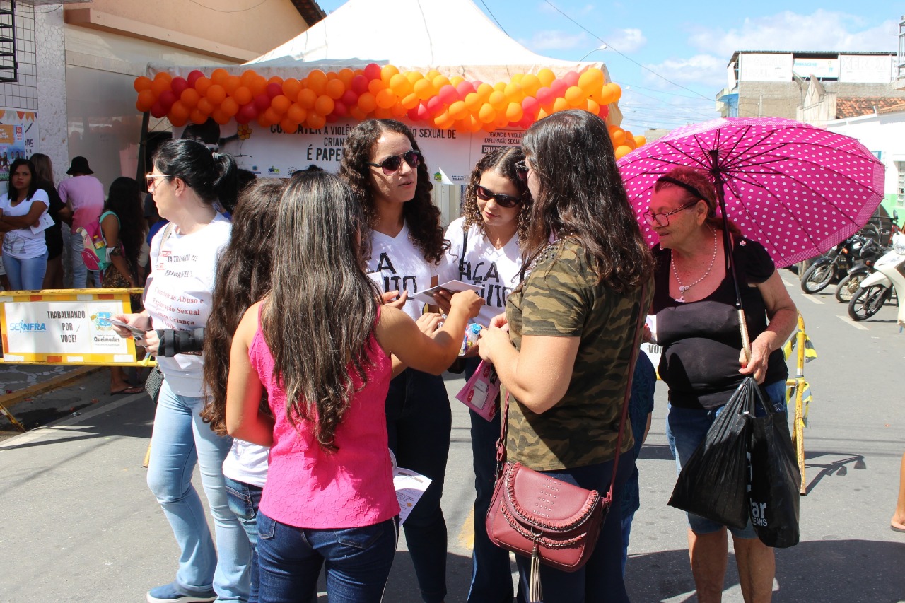 A Prefeitura de Queimadas, através da Secretaria Municipal de Desenvolvimento Social (SMDS) e do Centro de Referência da Assistência Social (CREAS), realizou no último sábado (18), uma blitz de informações e conscientização acerca do combate à exploração sexual de crianças e adolescentes. A ação fez parte da campanha “Maio Laranja”, dedicada à ampliação do debate acerca da temática, e aconteceu nas proximidades de Rua César Ribeiro, no centro da cidade.