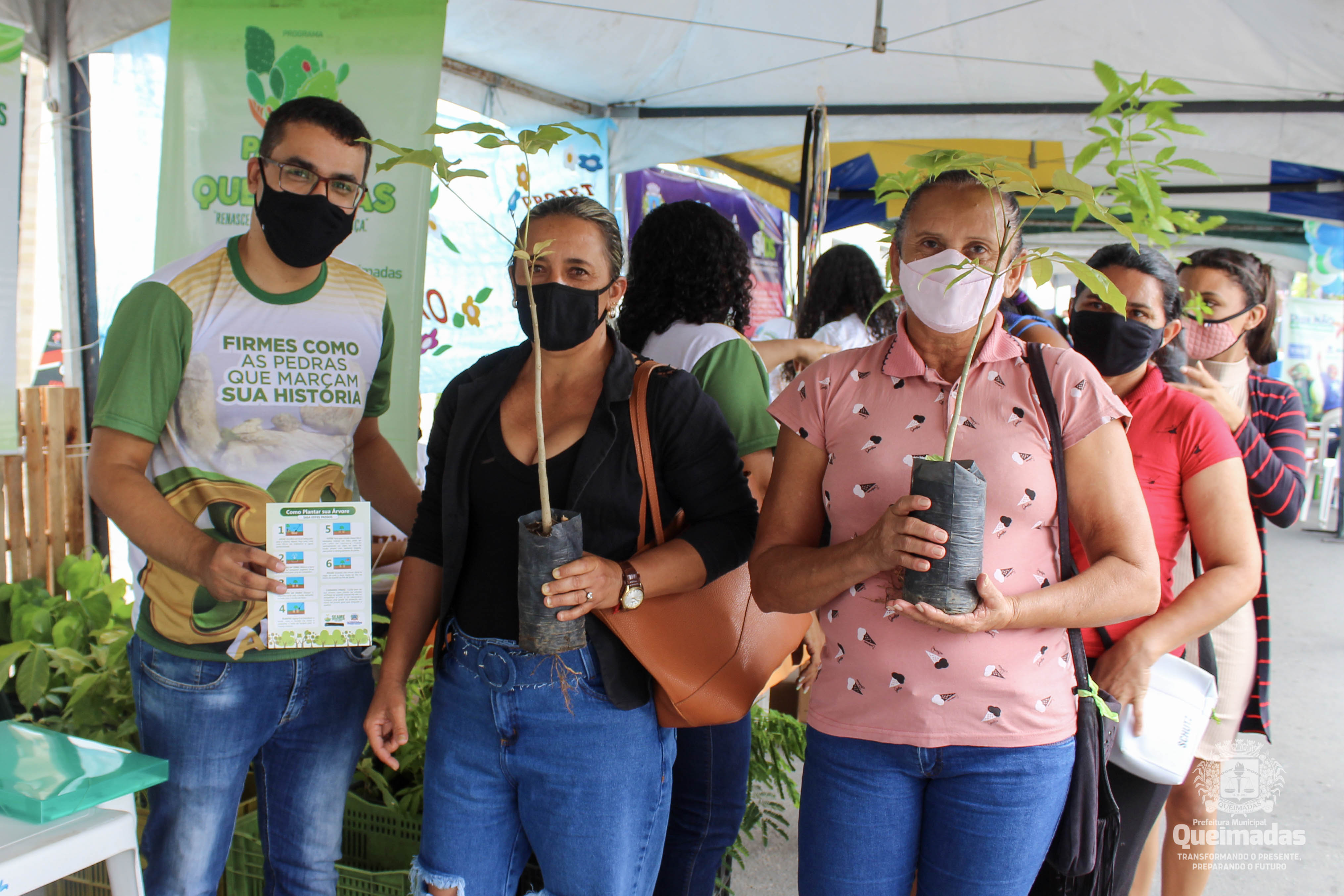 distribuição de mudas de plantas nativas e frutíferas, a coleta de pilhas e