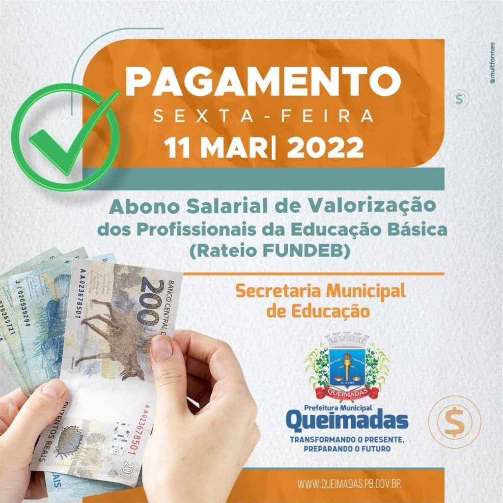 pagamento do abono salarial correspondente ao rateio do saldo do FUNDEB 70% do