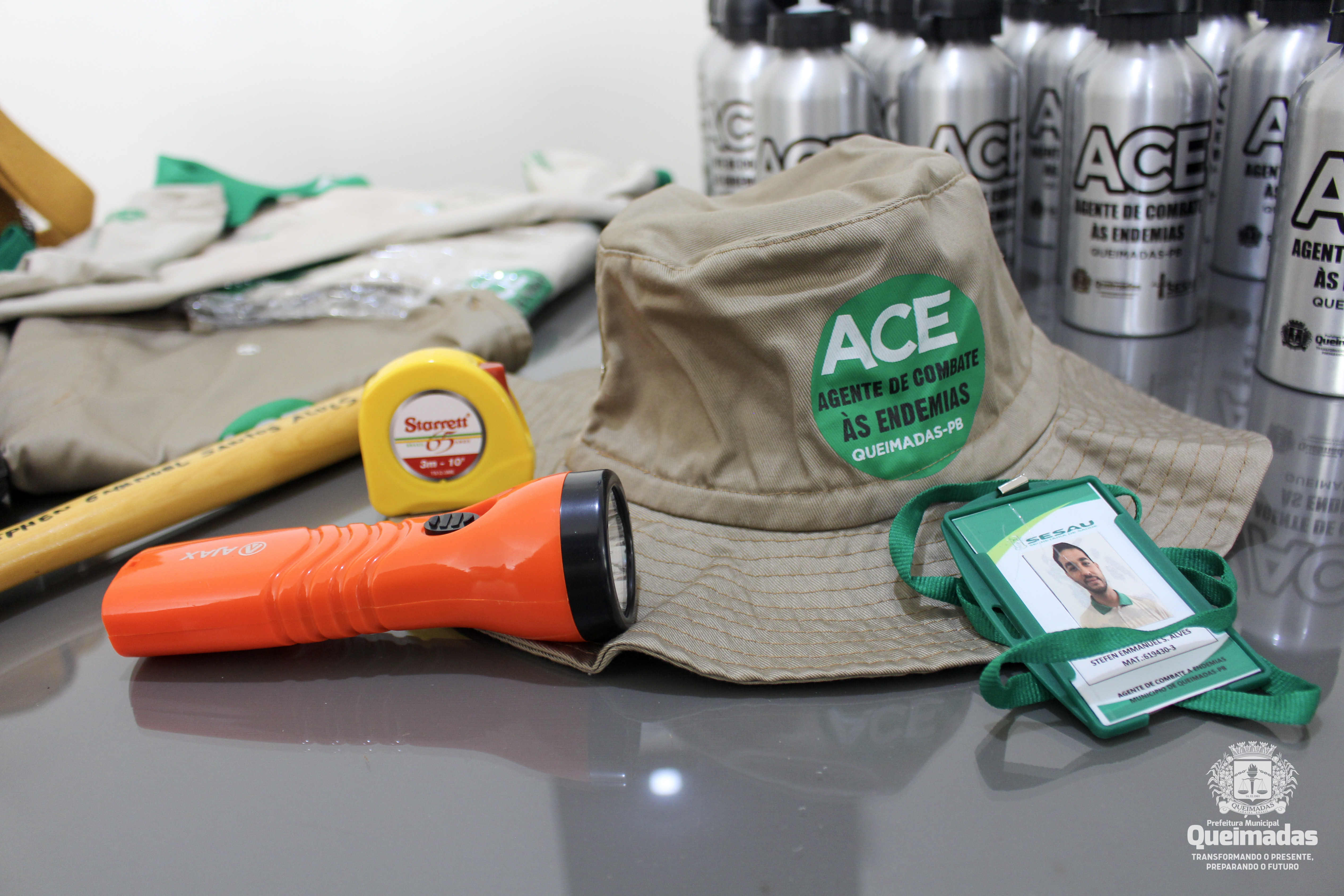 A Secretaria Municipal de Saúde de Queimadas/PB entregou novos fardamentos e equipamentos de proteção individual (EPI) para os seus agentes de combate às endemias (ACE). O conjunto de EPI's (que inclui camisas, botas, chapéu, bolsa, garrafa de água, ferramentas de uso diário e outros equipamentos) é essencial para que os profissionais exerçam suas atividades com proteção e qualidade, e a gestão municipal cumpre a sua responsabilidade de proporcionar sempre os equipamentos necessários.
